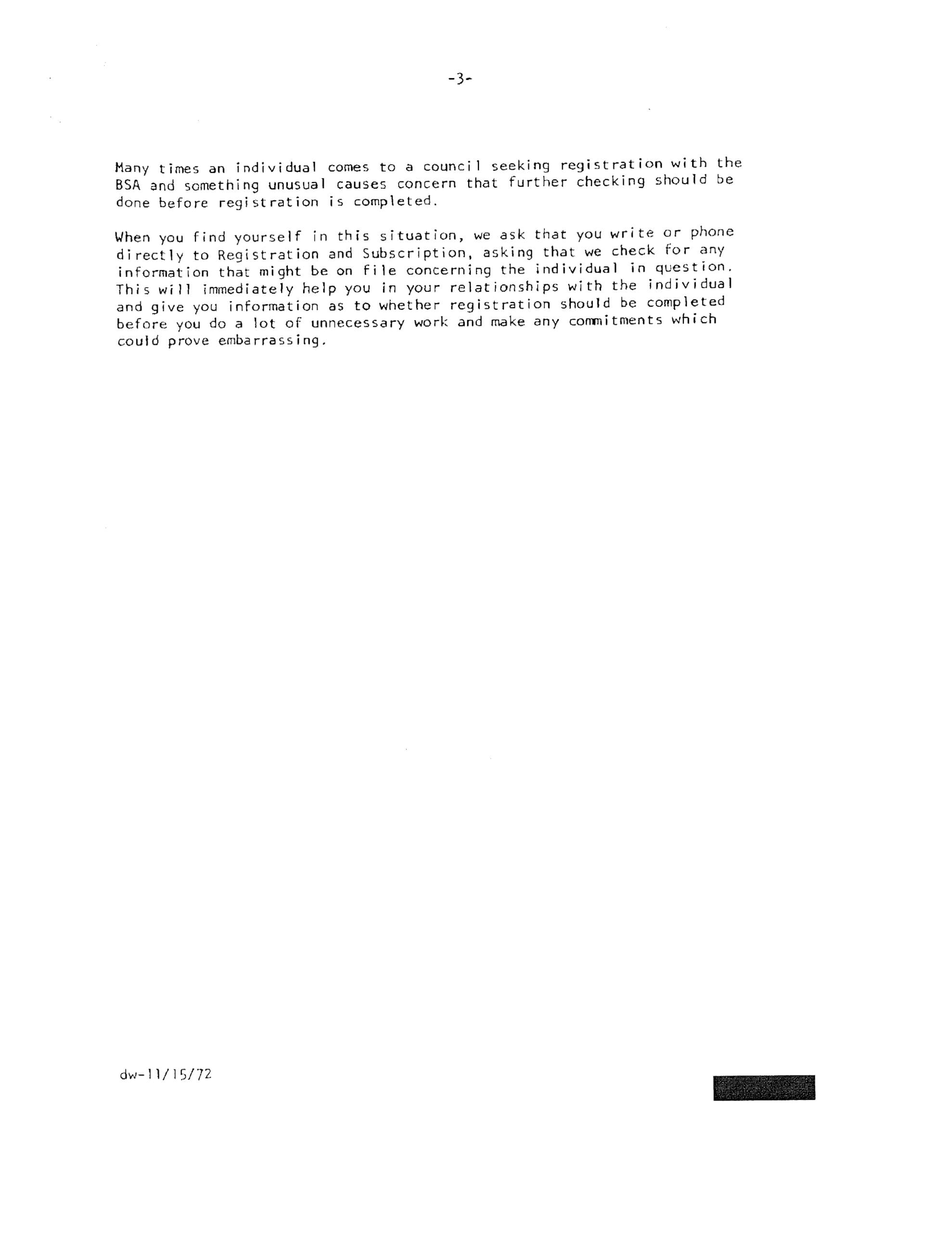 - BSA registration head Paul Ernst letter to all Scout executives, 1972, p. 3