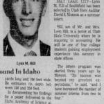 [...] Lynn Hill, is an auditor for the LDS Church and is presently working in that capacity in Japan and other Asian countries.
